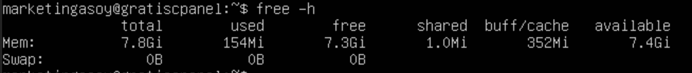 Command ini akan menunjukkan penggunaan RAM secara ringkas dan akan menampilkan total, used, free, shared, buffers, dan cached dari RAM sistem.ย