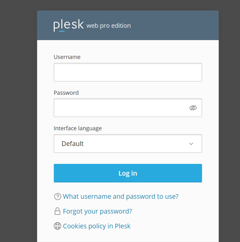 1. Login pada halaman Plesk. Masukkan kredensial yang kamu miliki.