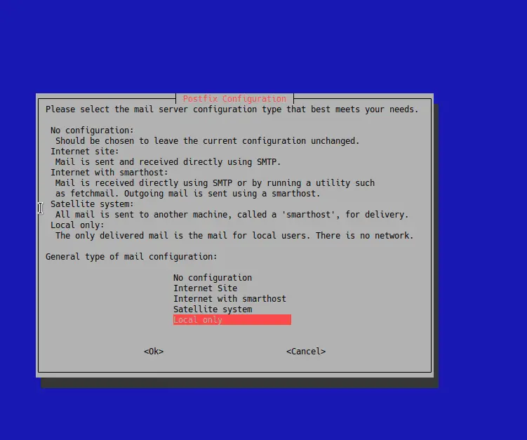 Bila memiliki mail server, kamu dapat menambahkan sekaligus pada saat proses instalasi Proxmox VE-nya yang nantinya dapat berguna sebagai email relay. Namun, bila kamu tidak memiliki mail server, bisa menggunakan local only saja dan atur namanya menjadi localdomain dan pilih langkah-langkah berikut ini:ย