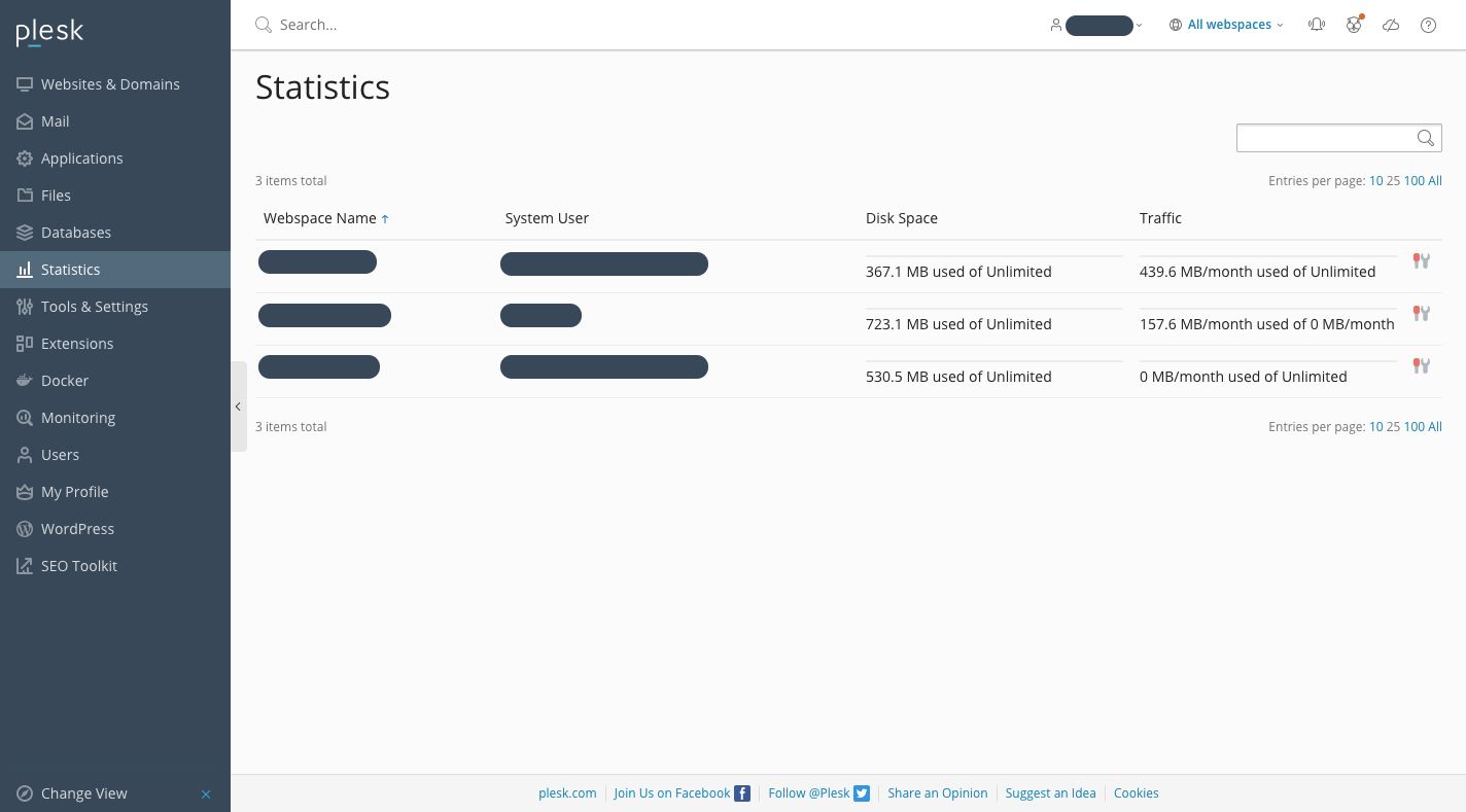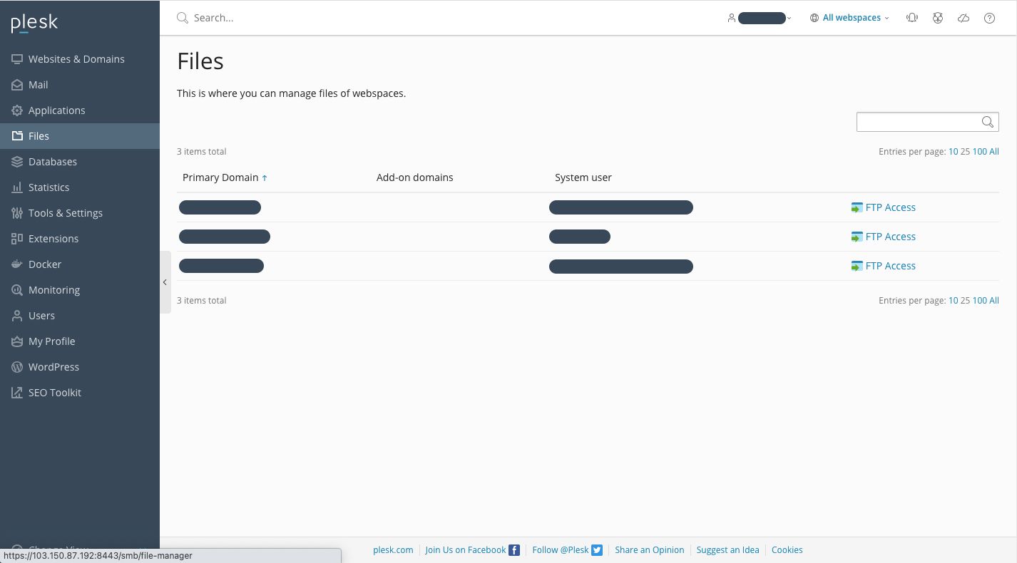 Plesk hadir dengan desain yang modern dan serupa dengan admin panel pada WordPress dan content management system (CMS) lainnya.ย ย Dengan main menu di sisi kiri, Plesk membuat penggunanya dapat dengan mudah mengoperasikan kursor untuk memilih menu Mail, Applications, Files, Databases, Statistics, Tools, Extension, dan lain sebagainya. Plesk juga mengkategorisasikan menu per itemnya dan menamakan sesuai dengan kegunaannya.ย ย Oleh karena itu, Plesk dapat dengan mudah dioperasikan oleh siapa saja.ยย