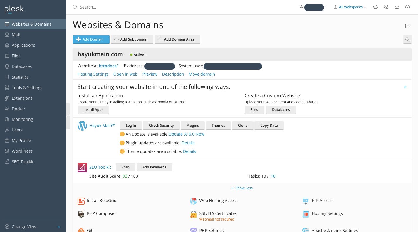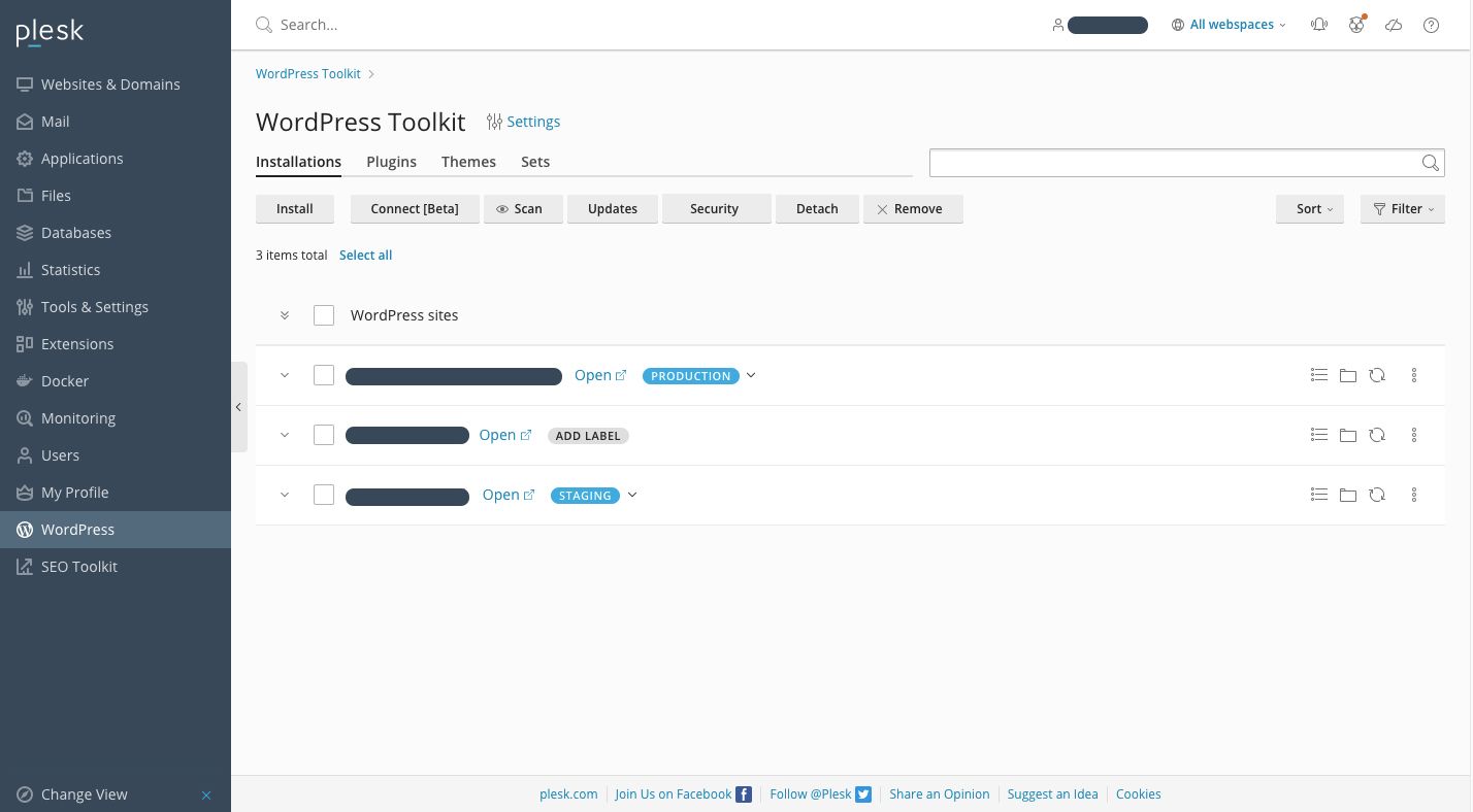 WordPress merupakan salah satu fitur favorit yang dicari-cari pengguna Plesk. Fitur ini membantu kamu untuk memaksimalkan kinerja WordPress. Kehadiran fitur WordPress Toolkit pada Plesk membuat kamu dapat mengelola lebih efektif dan efisien karena diletakkan dalam satu fitur atau menu yang sama.ย ย Adapun tiga menu yang terdapat dalam fitur ini adalah:ย