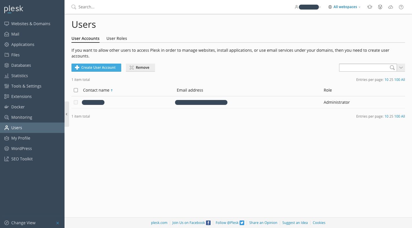 - Web User: Kamu bisa menggunakan menu ini untuk mengatur akun untuk pengguna yang memiliki website personal pada situs kamu, tanpa harus mengakses Plesk Panel. Jadi, kamu dapat โmeng-hostโ situs mereka dalam satu wadah di bawah salah satu bisnis kamu.ย